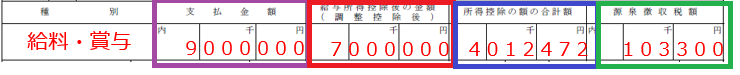 給与と源泉徴収の金額: Thông tin thu nhập, thuế bị thu