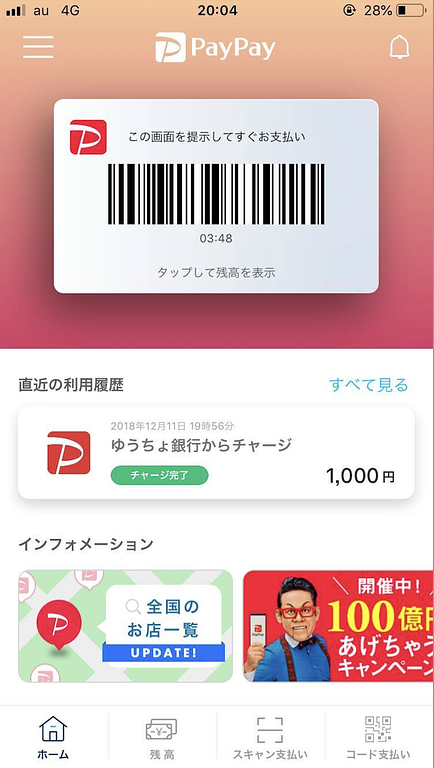 これで、PayPayを使って支払いができるようになりました
