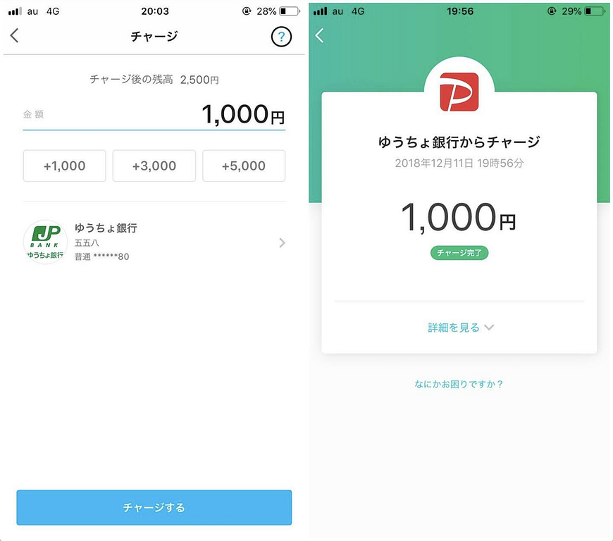 ステップ4:PayPayへのチャージ
